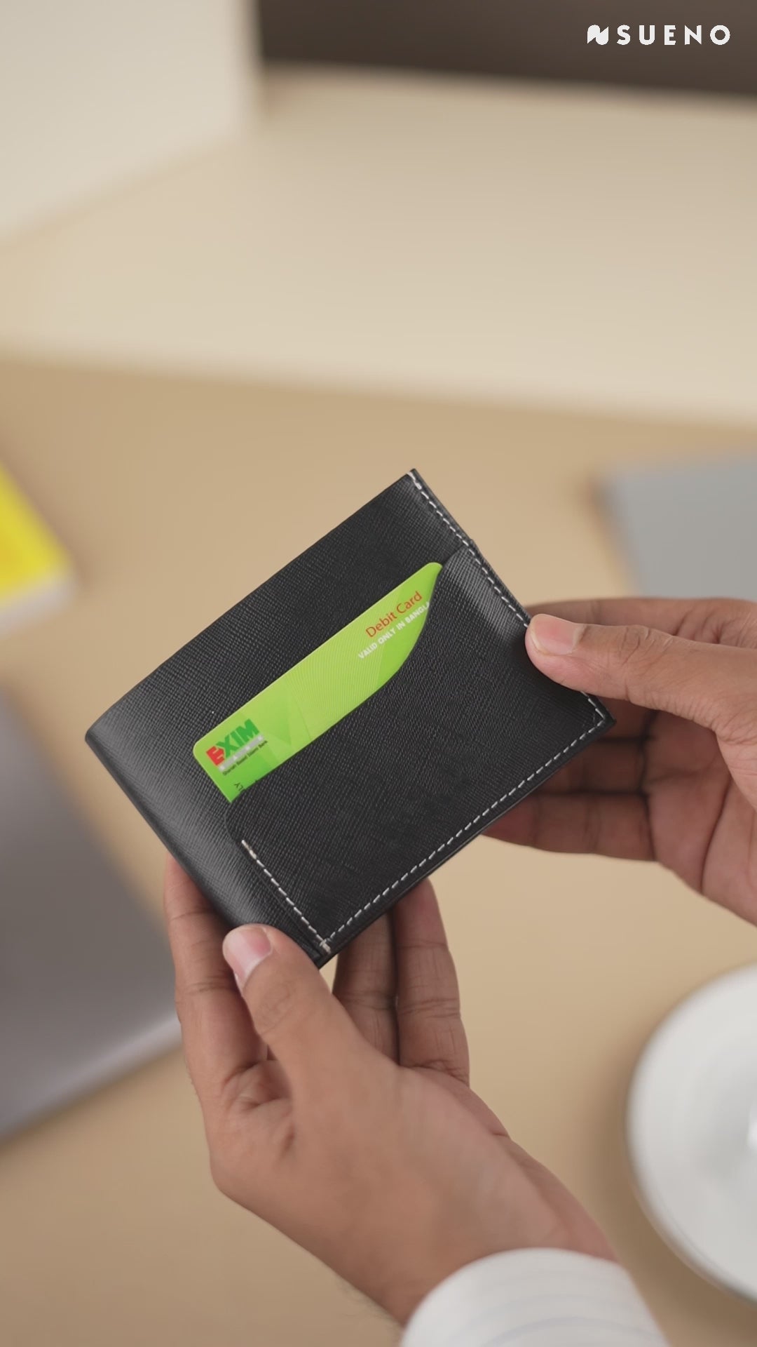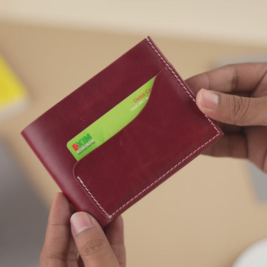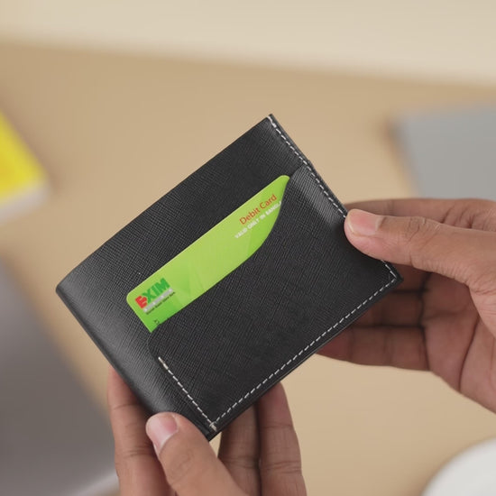 Crafted from genuine leather, this bi-fold wallet combines functionality with refined design. It features twelve interior card slots, plus dedicated ID and bank card holders for organized storage. Dual cash compartments keep bills separated, while an external card slot on the front provides quick access to frequently used cards. Smart stitching ensures durability and longevity, making this wallet a reliable everyday companion that balances capacity with compact elegance.
