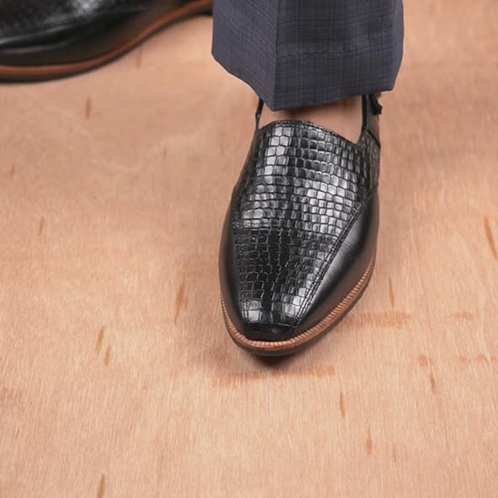 Crafted from genuine cow leather, this men's sandal shoe combines comfort with contemporary style. The integrated back belt ensures a secure fit while maintaining ease of wear, making it ideal for pairing with traditional ethnic outfits. Designed to complement timeless fashion sensibilities, this versatile sandal adapts seamlessly to evolving trends while delivering the durability and quality that genuine leather provides. Perfect for those seeking both functionality and cultural authenticity in their footwear collection.